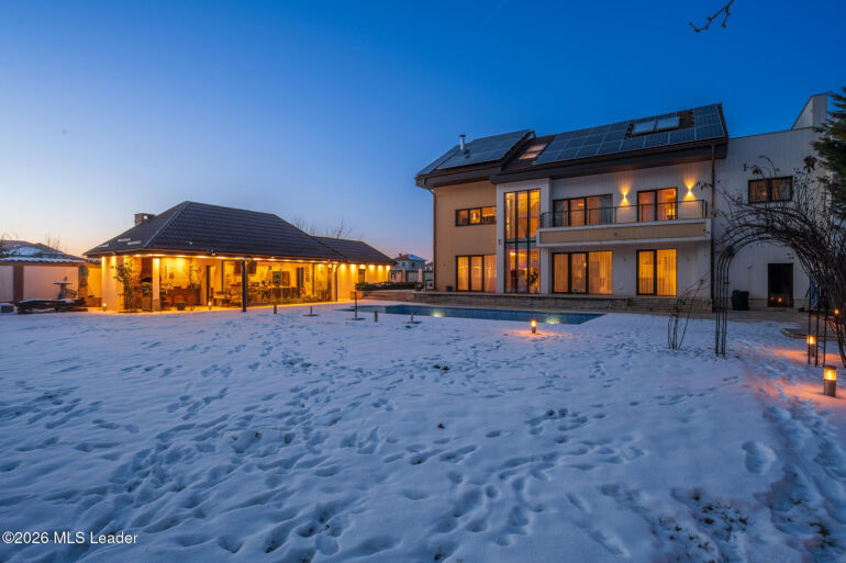 CORBEANCA - ROSE GARDEN, VILA 500 MP, LOT 1100 MP, LA CHEIE! Situata intr-un complex rezidential elegant si intim, cu acces direct din soseaua principala si acces imediat la DN 1 si A 0. Vila contemporana, cu 5 dormitoare si bai en-suite, bucatarie mare, living superb cu scara interioara si suprafete vitrate mari, ideala pentru o familie ce isi doreste statut, spatii ample si prestigiu. Lot mare, amenajat peisagistic, piscina, foisor recent amenajat, sistem de irigatie, vedere la padure. Interior foarte spatios, spatii de depozitare, dressing-uri, garaj cu acces direct in casa, gym, panouri fotovoltaice de 25 kw, semineu.